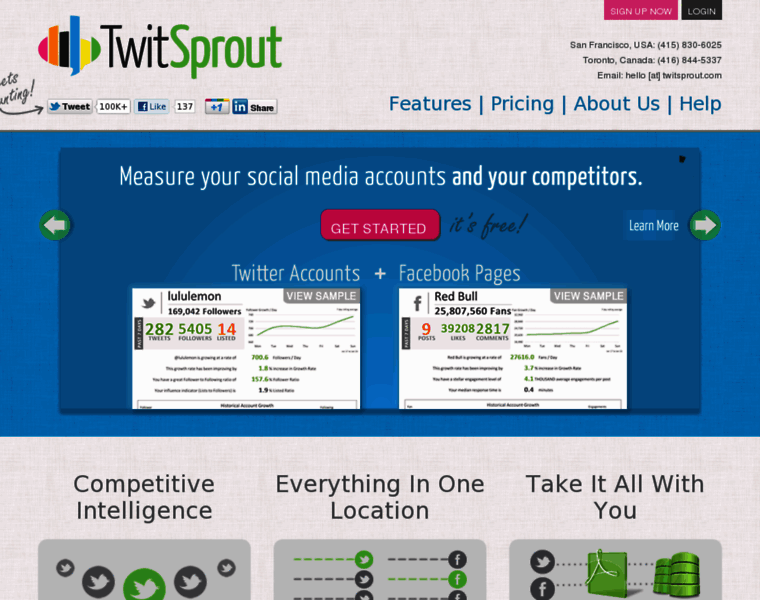 TwitSprout delivers one-page dashboards to measure and visualize social media activity. Performance indicators help businesses measure the success of social media campaigns and benchmark against competitors. Smart notifications and custom branding / white label are also available.