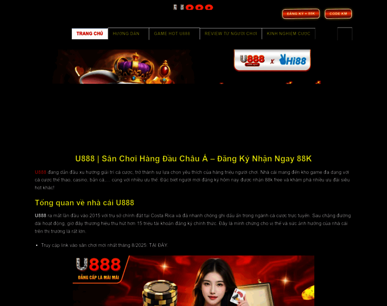 U888 - Trải nghiệm cá cược đỉnh cao với thể thao, casino, bắn cá, xổ số, đá gà, casino cùng loạt ưu điểm nổi bật. Truy cập link mới nhất đăng ký nhận 88k!