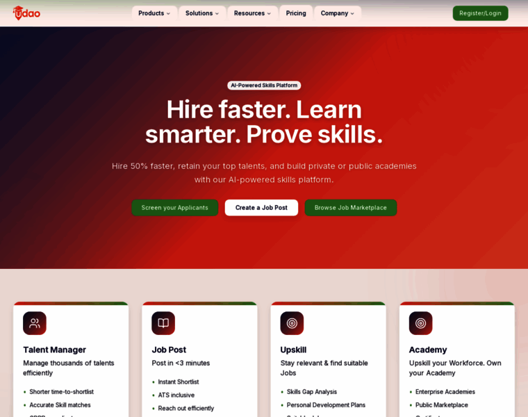 Udao links skills‑first learning with AI‑accelerated recruiting. Verified skills match open roles.