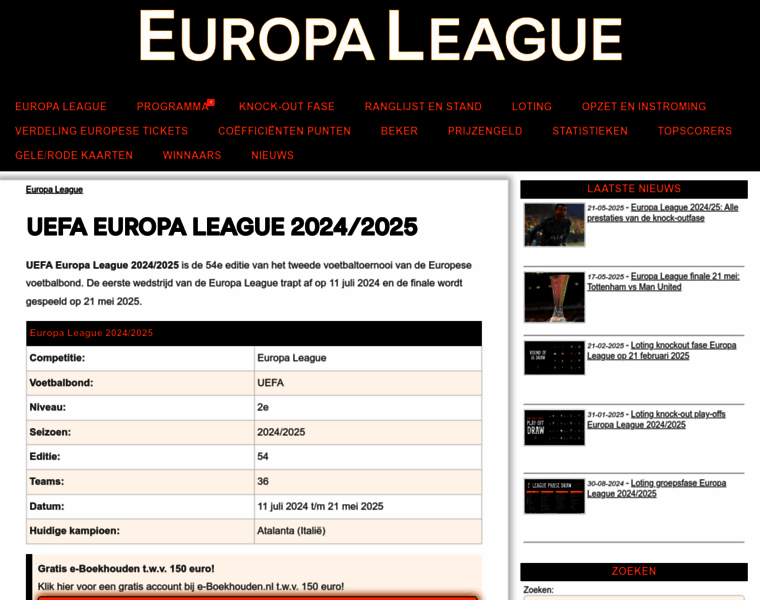Alles over de Europa League voetbal, zoals het programma, stand, topscorers en prijzengeld. Alle info over de UEFA Europa League seizoen 2024/2025.