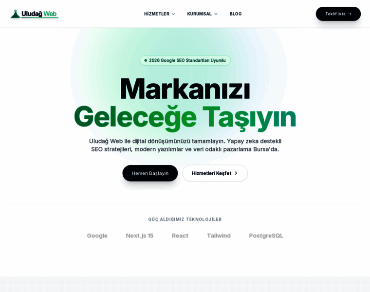Bursa'nın lider dijital performans ajansı Uludağ Web ile tanışın. Yapay zeka destekli SEO, özel web yazılım ve veri odaklı Google reklam yönetimi ile işinizi büyütün.