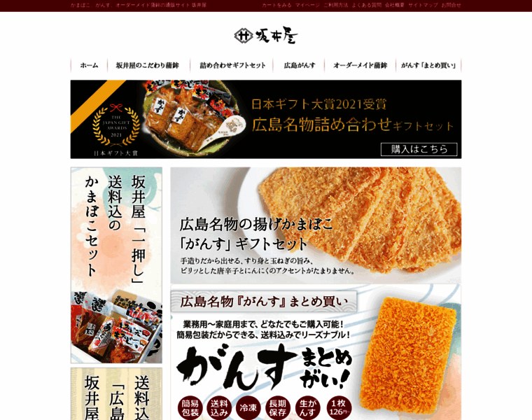 広島県草津にある、創業100年以上の「広島がんす」専門の老舗蒲鉾屋です。瀬戸内海で捕れた新鮮な魚1匹から職人が手造りする蒲鉾です。お祝い用の蒲鉾はオーダーメイドで制作しております。