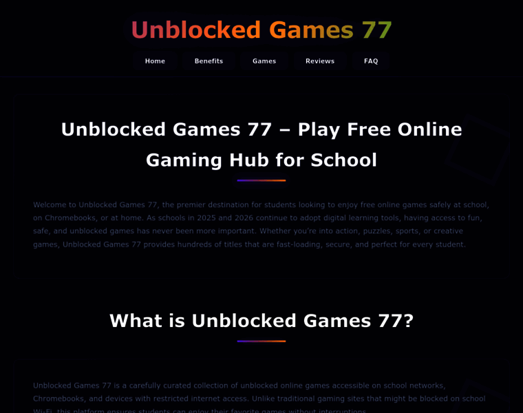 Unblocked Games 77 - Play Free Online Gaming Hub for School