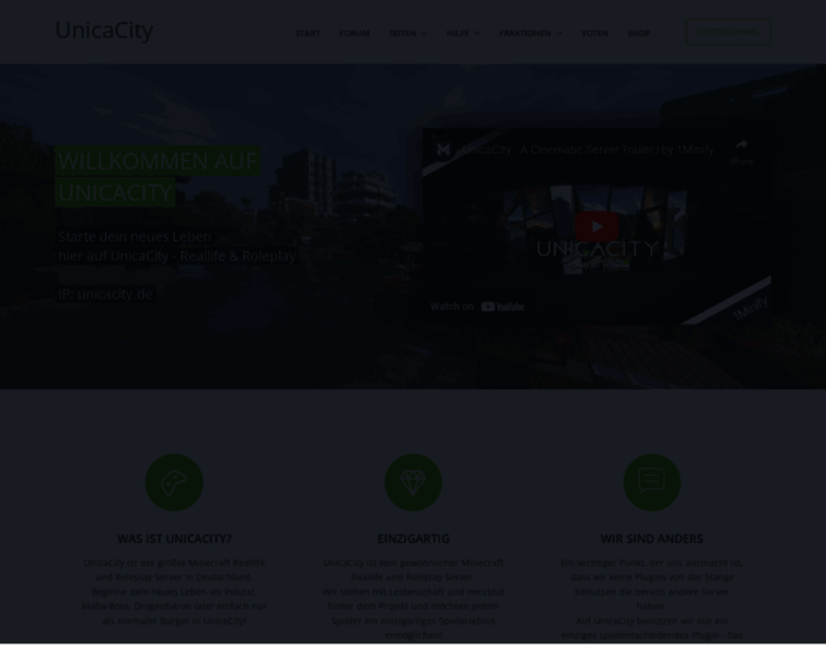 UnicaCity - Minecraft Reallife und Roleplay Server. Wir bieten dir ein einzigartiges und innovatives Minecraft Reallife und Roleplay Spielerlebnis! Werde auch du ein Teil unserer großartigen Community. Starte dein neues Leben als korrupter Polizeichef, als gefürchtetes Bandenmitglied oder als normaler Bewohner - alles ist möglich auf UnicaCity - Dein Minecraft Reallife und Roleplay Server.
