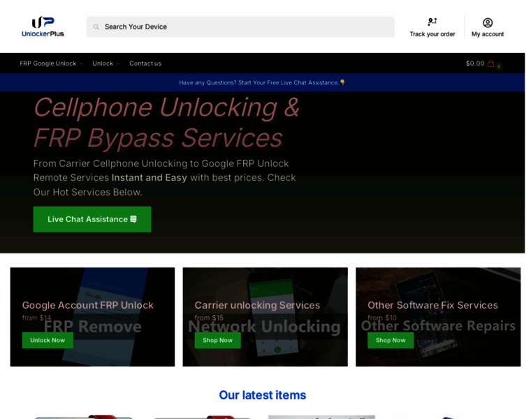 Unlocker Plus CellPhone Network Unlock & FRP Google Bypass Remote Services. 100% Guaranteed Service with easy process. Free Live Chat Support