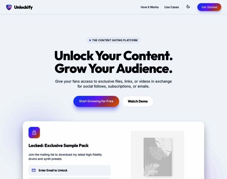 Unlockify helps creators gate exclusive files, links, and videos in exchange for follows, subscriptions, or email signups.