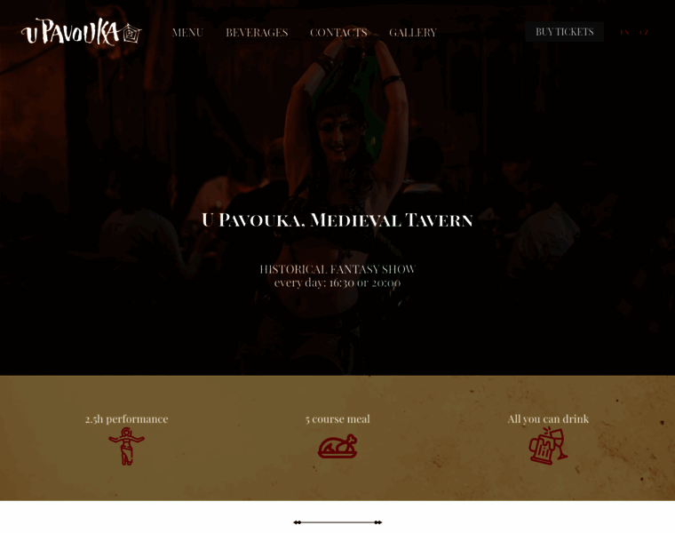 Historical fantasy show U Pavouka. You will be entertained by swordsmen, jugglers, and belly dancers, accompanied by music and drinks