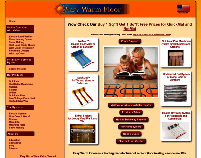 Electric floor heating products for any floor type at factory direct prices. Free instant online quote. All of our heated floor systems are made in the U.S.