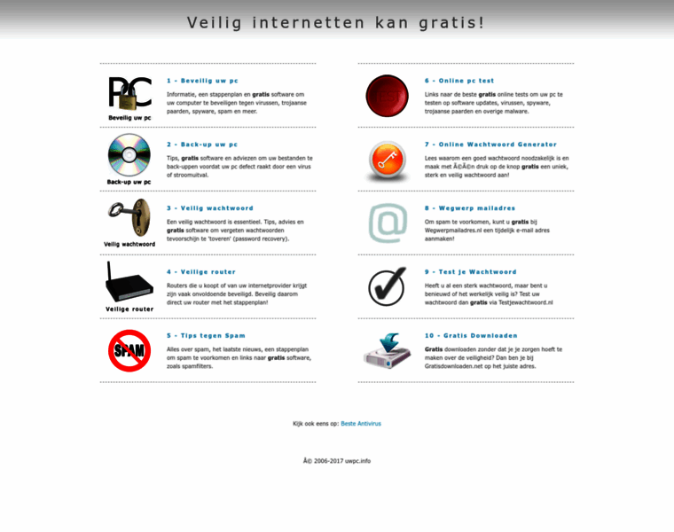 Informatie, stappenplannen en gratis software voor pc beveiliging, back-uppen van bestanden, kiezen van een veilig wachtwoord en anti-spam.