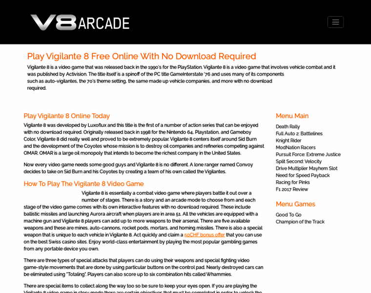Play Vigilante 8 With No Download Required