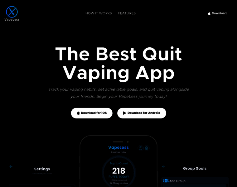 Quit vaping with VapeLess. Track puffs, set goals, team up with friends, and manage cravings with guided breathing exercises.