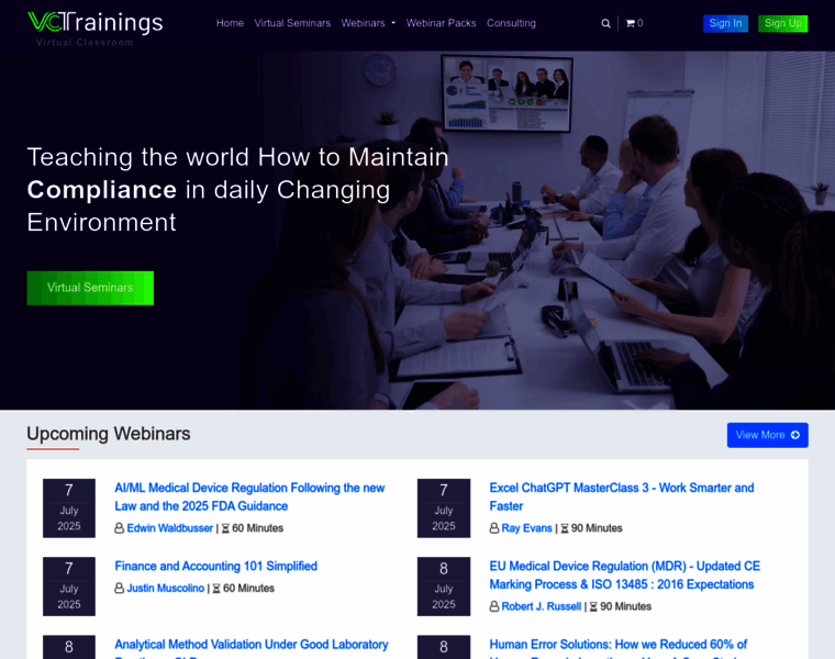 Regulatory Compliance Training, Risk, FDA, Compliance Updates, Seminars and Webinars - VCTrainings