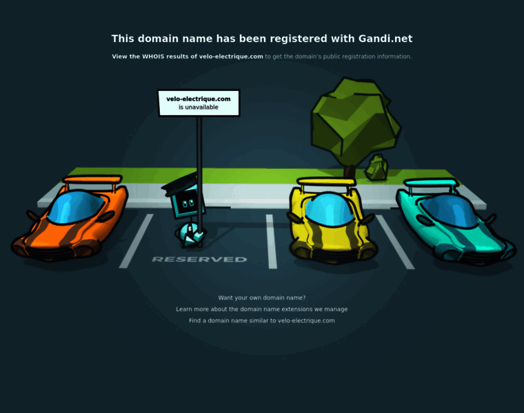 The registrar of velo-electrique.com is GANDI SAS and the name expires on 2026-10-08. According to open source data, you can reach the owner at 7b63fa9e8bea5f0fa10040a9ad88fc93-50205433@contact.gandi.net but please make sure you have a good reason for unsolicited messages. Their country of residence is United Kingdom.