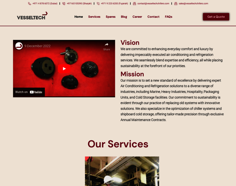 VesselTech is a trusted leader in industrial chiller system repair in Dubai ,offering expert solutions in cold storage repair, marine air conditioning, and refrigeration services.We provide comprehensive support, including supply, installation, and maintenance.Contact us for professional service today