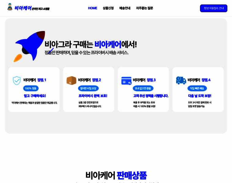 비아케어는 정품 비아그라 구매 사이트입니다. 100% 정품 비아그라 판매, 퀵배송과 익명 포장, 고객만족도 높은 믿을 수 있는 온라인 약국 비아몰!