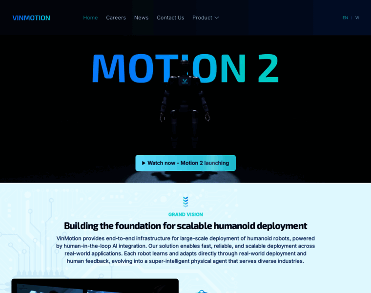 At VinMotion, our mission is to accelerate the adoption of Physical AI by building end-to-end infrastructure for scalable humanoid deployment.
