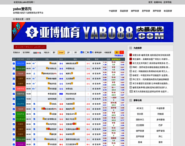 亚博资讯网(yabo88.com)是一个专业的体育足球资讯网站,提供及时、全面、准确的国际足球热点,呈现意甲、英超、西甲,欧冠等五大联赛的必发指数,必发交易量,凯利指数,热门指数,积分、赛程,提供欧冠最新赛况、视频、新闻,分享天下足球以及历史资料与数据等,内容更新准确,比分最快的足球网站平台。