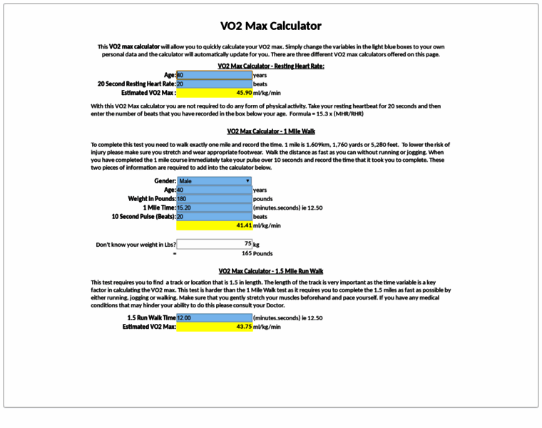 - v02 max calculator