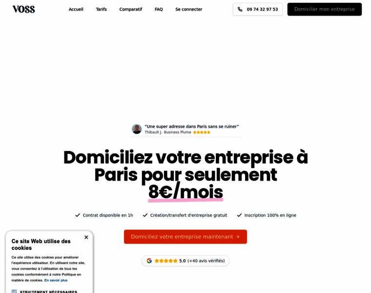 Domiciliation entreprise Paris : tarif CFE minimal. Inscription en ligne 10min, contrat sous 1h, courrier scanné quotidien. Dès 8€/mois.