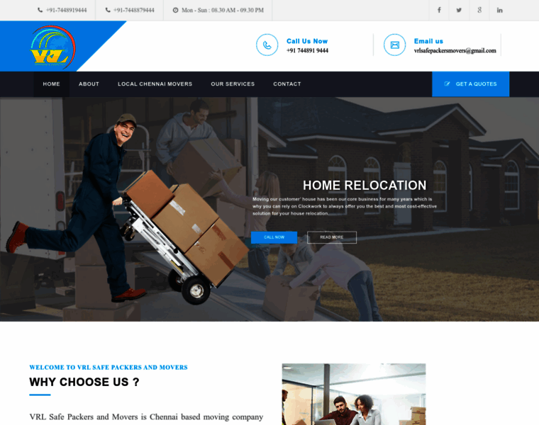 VRL Safe Packers and Movers offer complete moving and relocating services across India from Chennai. Call us Today 07448879444
