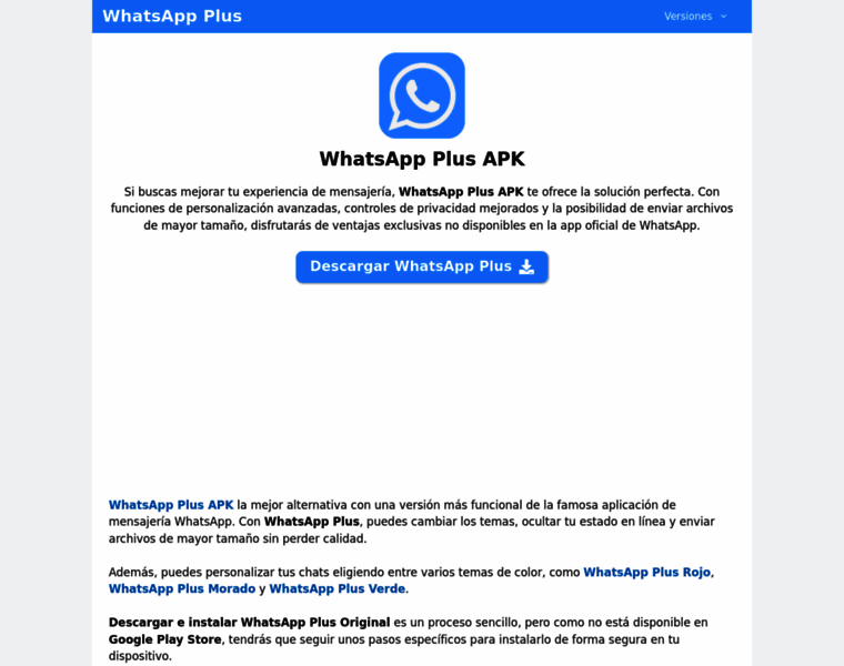 Descargar WhatsApp Plus última v18.40 nueva versión APK en color azul original. ¡Actualizar a la versión de abril 2025 e instale la aplicación oficial ahora!