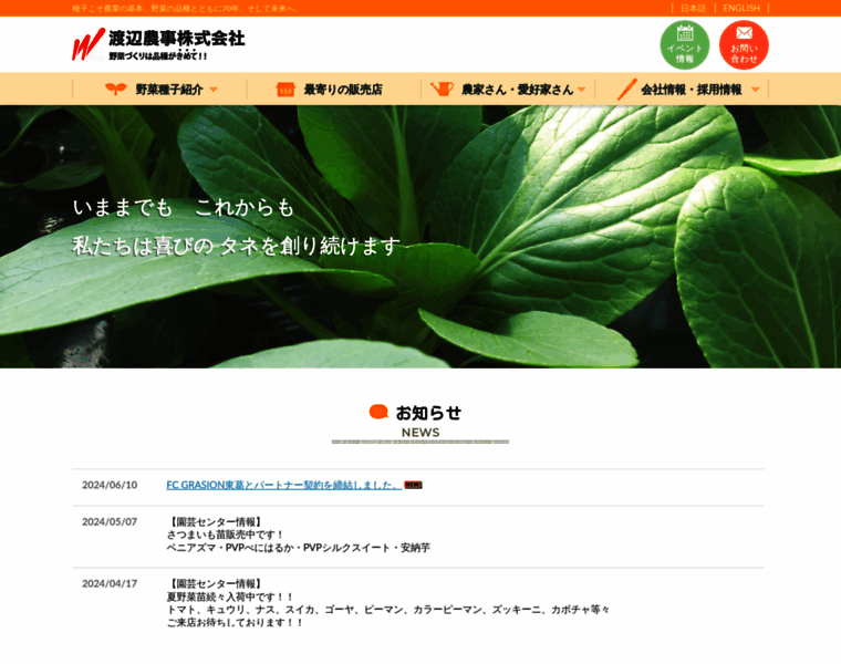 渡辺農事株式会社 / 野菜種子の生産と販売、農業資材および園芸資材の販売
