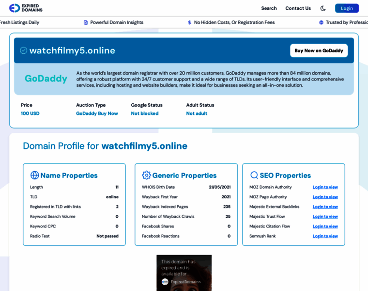 Buy watchfilmy5.online Domain on GoDaddy for 100 | ExpiredDomains.com