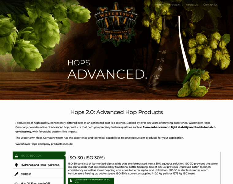 Production of high quality, consistently bittered beer at an optimized cost is a science. Backed by over 150 years of brewing experience, Watertown Hops Company provides a line of advanced hop products that help you precisely feature qualities such as foam enhancement, light stability and batch-to-batch consistency, with favorable, bottom-line impact.