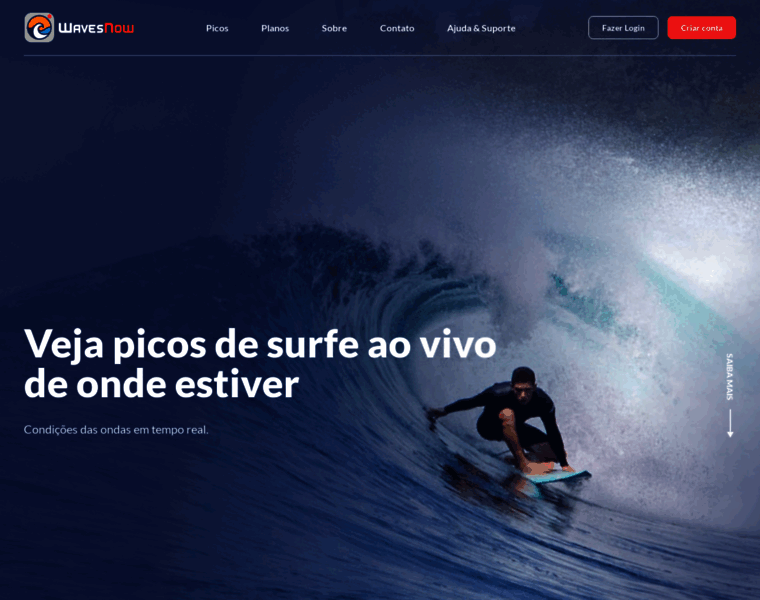 WavesNow é um site que mostra câmeras ao vivo e condições das ondas em praias do Brasil.