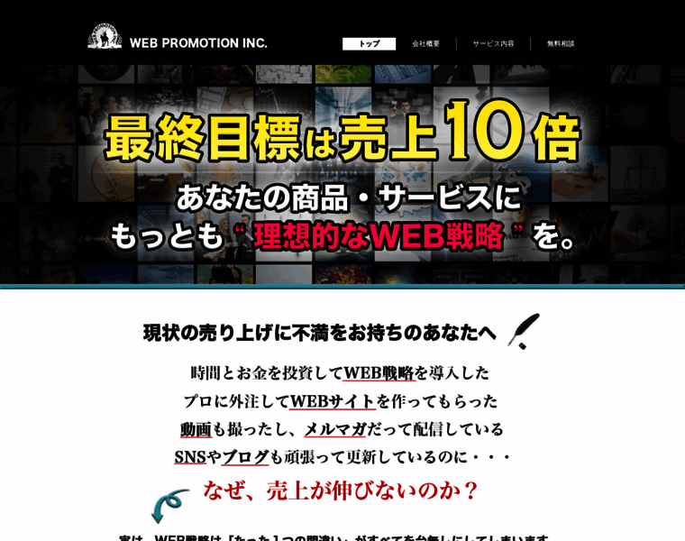 現状の売り上げに不満をお持ちのあなたへ。最終目標は現状の売上10倍。あなたの商品・サービスにもっとも“理想的なWEB戦略”を。
