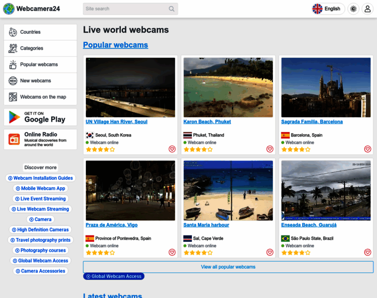 Webcamera24 aggregates live HD webcams from around the globe—travel online and discover new places in real time.