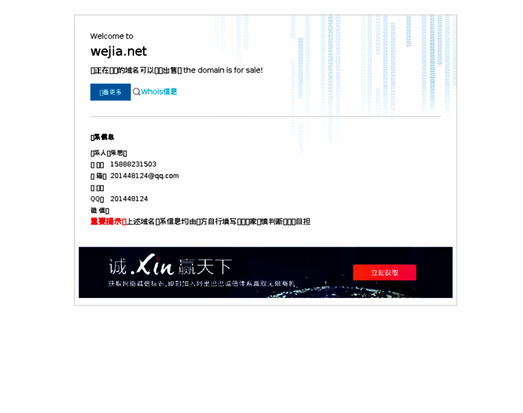 The registrar of wejia.net is SHANGHAI MEICHENG TECHNOLOGY INFORMATION DEVELOPMENT CO., LTD. and the name expires on 2019-07-07. According to open source data, you can reach the owner at 2732971276@qq.com but please make sure you have a good reason for unsolicited messages. Their country of residence is China.