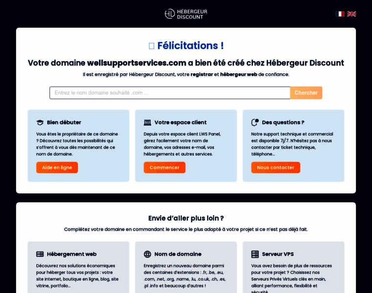 Bravo ! Votre domaine wellsupportservices.com a bien été créé avec Hebergeur-Discount !