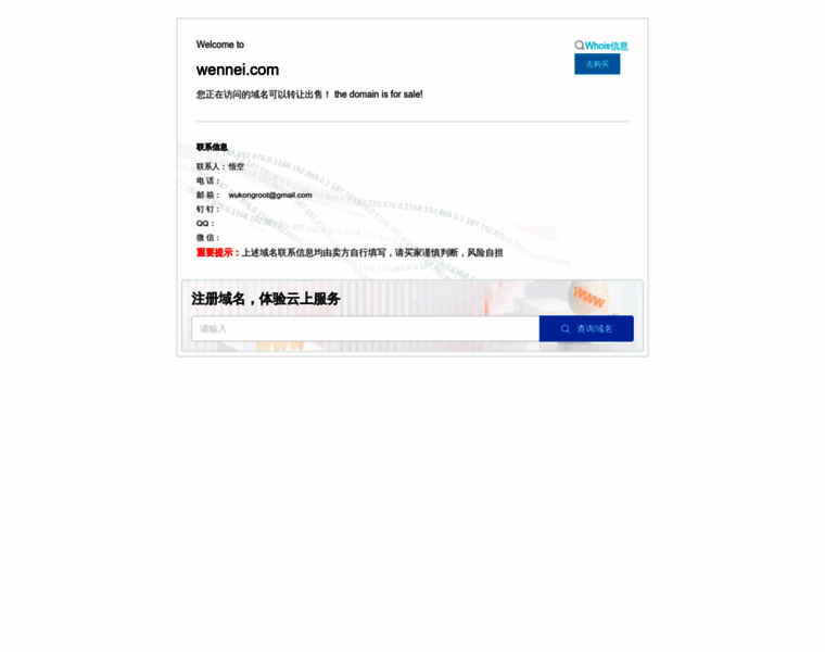 The registrar of wennei.com is Alibaba Cloud Computing (Beijing) Co., Ltd. and the name expires on 2026-05-19. According to open source data, you can reach the owner at ym@zunre.com but please make sure you have a good reason for unsolicited messages. Their country of residence is United States of America.