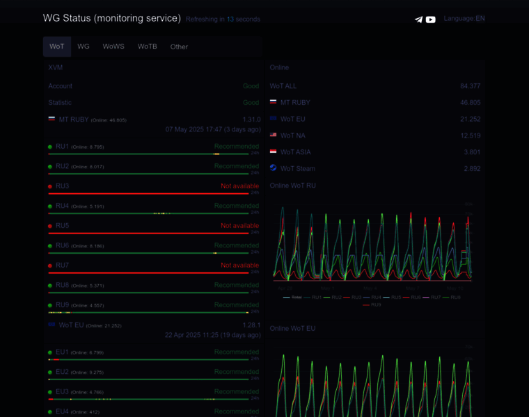 WG Status — Статус серверов WoT и онлайн WG