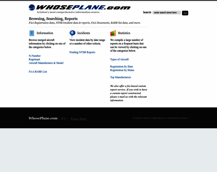 Aviation Aircraft and Airplane N-Number / Tail Number Look-up and Search