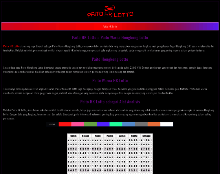 Paito HK Lotto atau Paito Warna Hongkong Lotto berisi data keluaran togel Hongkong terlengkap. Cek update paito warna HK hari ini dan analisis pola angka untuk strategi terbaik.