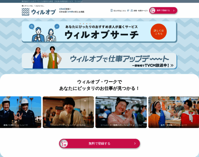 【ウィルオブ】は株式会社ウィルオブ・ワークが運営する全国のお仕事求人を掲載する求人情報サイトです。コールセンター・軽作業・介護・販売・事務など様々な職種をご紹介します。