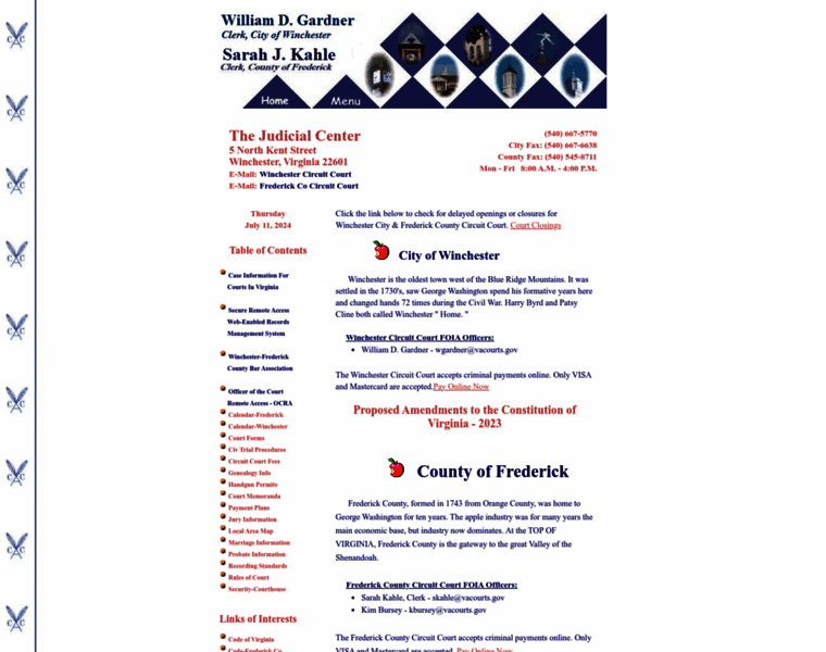 Winchester Frederick County Circuit Court Clerks Welcome Page