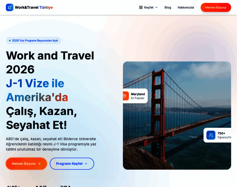 Work and Travel 2026 başvuruları açık! 25 yıllık deneyim, %95+ vize başarısı. J-1 Visa ile Amerika'da çalış, kazan, seyahat et. Ücretsiz danışmanlık için hemen başvur!