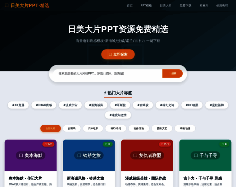免费ppt模板网提供日美大片风格PPT资源精选,海量电影质感模板与高清素材,从新海诚到漫威,一键获取惊艳演示。