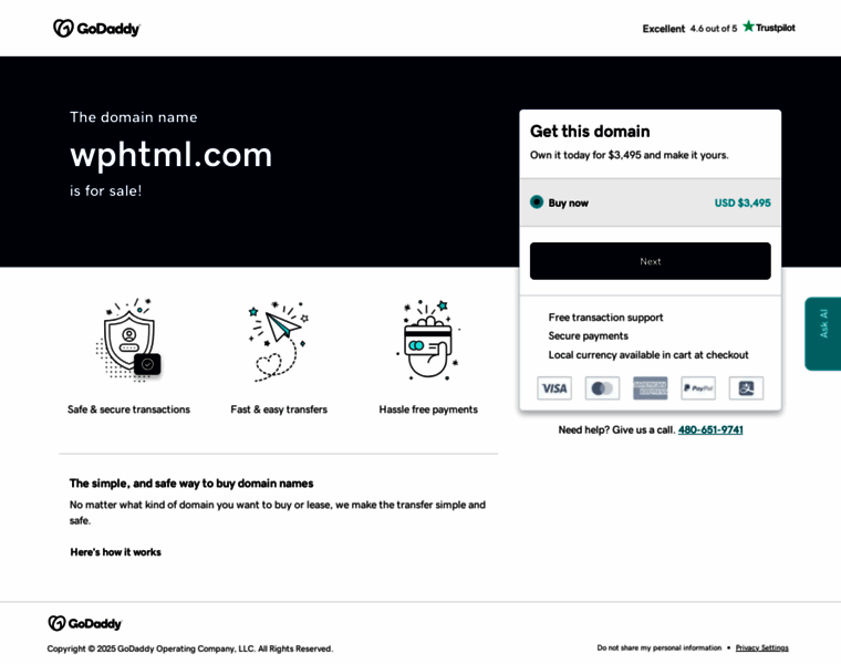 The registrar of wphtml.com is RALLY CRY DOMAINS, LLC and the name expires on 2026-10-02. According to open source data, you can reach the owner at dataprotected@maskeddetails.com but please make sure you have a good reason for unsolicited messages. Their country of residence is Spain.