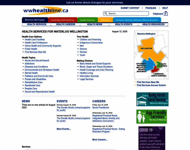 Local health services, news, careers and events for Waterloo Wellington, Ontario including Cambridge and Area, Kitchener-Waterloo and Area and Guelph and Wellington
