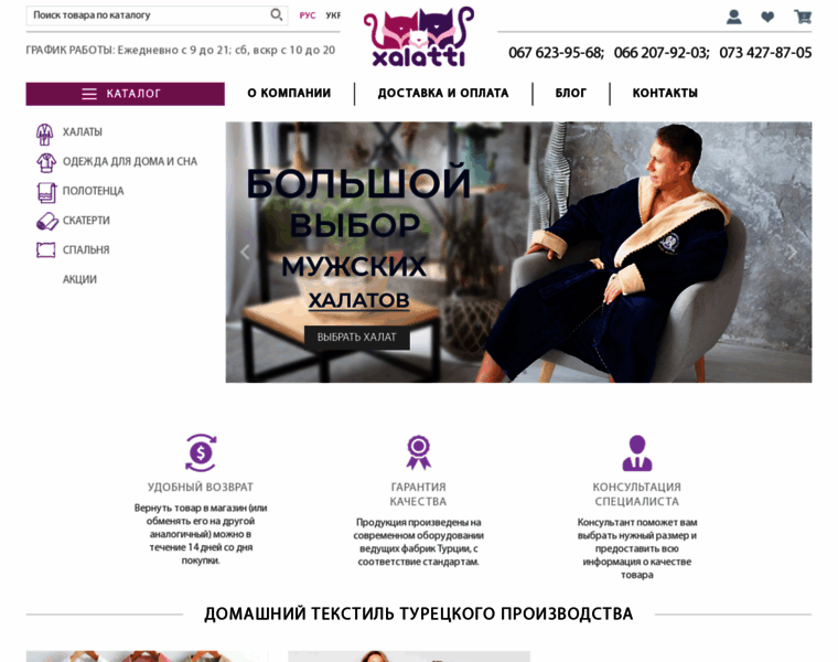 Интернет-магазин домашней одежды и текстиля: халаты, постельное бельё, полотенца, скатерти