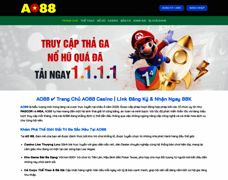 AO88 là nhà cái uy tín bậc nhất tại Việt Nam. Đăng ký nhận ngay 88K miễn phí, trải nghiệm kho game đa dạng, bảo mật cao cấp, nạp rút nhanh chóng.