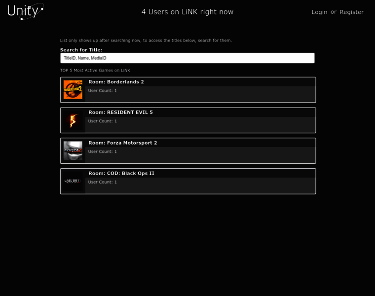 XboxUnity interface | Access to title updates, covers and link rooms