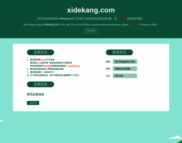 The registrar of xidekang.com is ERANET INTERNATIONAL LIMITED and the name expires on 2026-06-03. According to open source data, you can reach the owner at domains@hugedomains.com but please make sure you have a good reason for unsolicited messages. Their country of residence is France, French Republic.