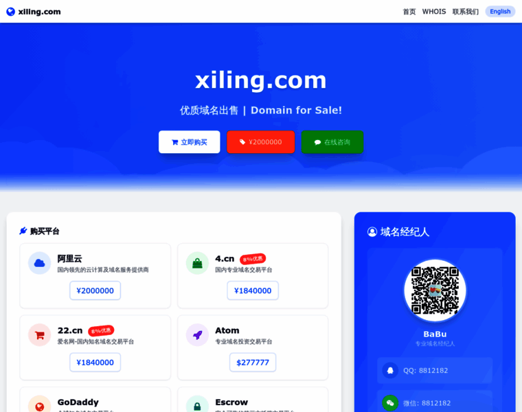 The registrar of xiling.com is Alibaba Cloud Computing Ltd. d/b/a HiChina (www.net.cn) and the name expires on 2025-12-26. Owner email is not available. Their country of residence is United States of America.