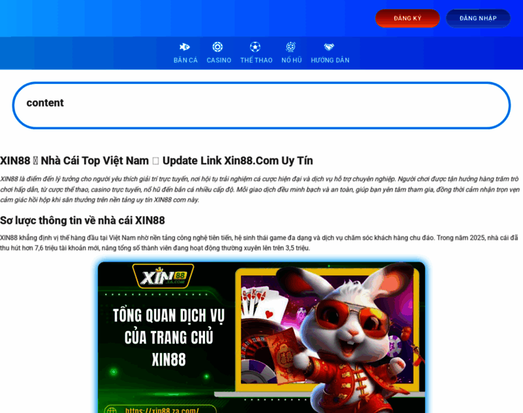 XIN88 là nhà cái top Việt Nam uy tín, bảo mật tuyệt đối, kho game đa dạng và cập nhật link mới nhất giúp người chơi trải nghiệm giải trí hiện đại, nhanh chóng.