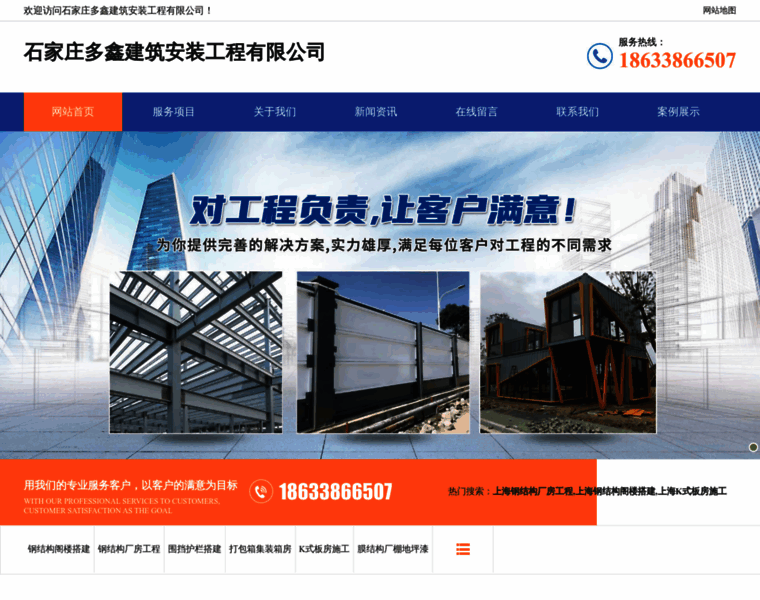 石家庄多鑫建筑安装工程有限公司,专业承接上海钢结构厂房工程、阁楼搭建,围挡护栏施工,打包箱集装箱房定制,K式板房建设,膜结构厂棚及地坪漆工程。我们以专业品质,打造安全、高效的建筑解决方案!
